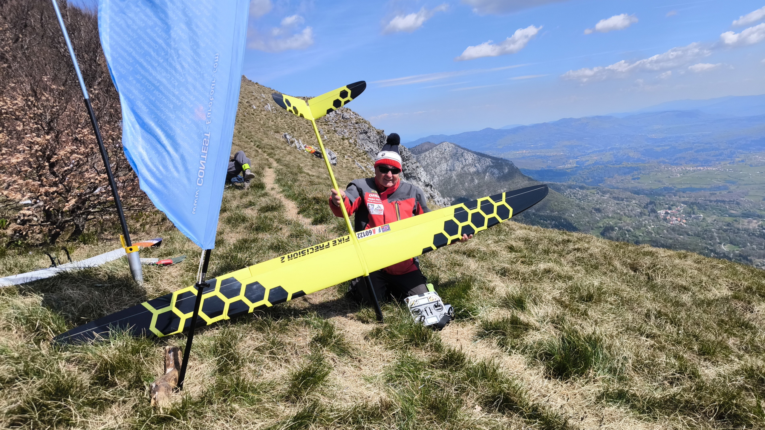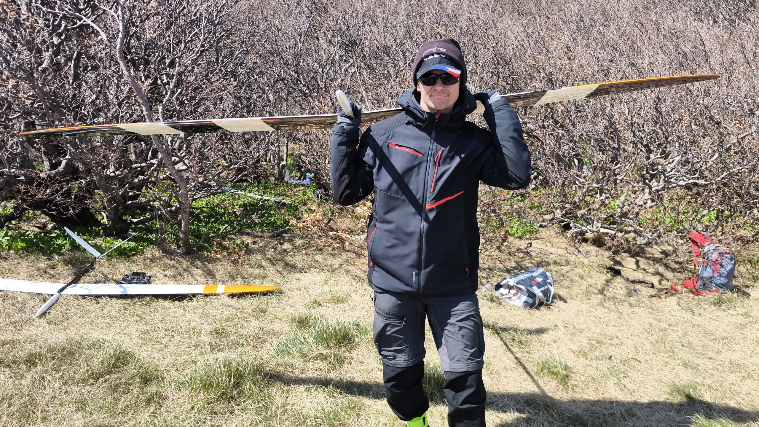 Súťaž sa začala okolo poludnia a stihli sa odlietať 3 celé kola a 2 skupiny aj to štvrté. Ja som mal technické problémy a radšej som nelietal. Vietor fúkal stabilne 12-15m/s a nárazy do 18m/s. Lietalo sa tam parádne, ale podaktorí „svetoví“ piloti mali problém s pristávaním a opakovali aj 7x a keďže sa vždy čakalo na dosadnutie modelu tak zdržovanie bolo náramné. Keby sa piloti naučili pristávať doma, mohli sa odlietať aj 2 kolá naviac. Čo už…